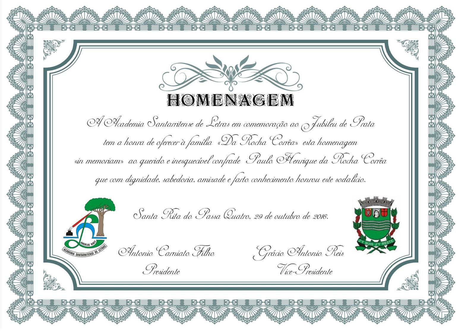 "Homenagem ao Acadêmico Professor PAULO HENRIQUE DA ROCHA CORRÊA"